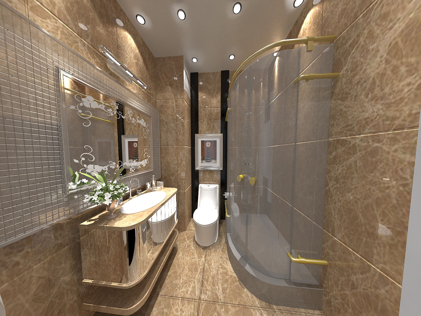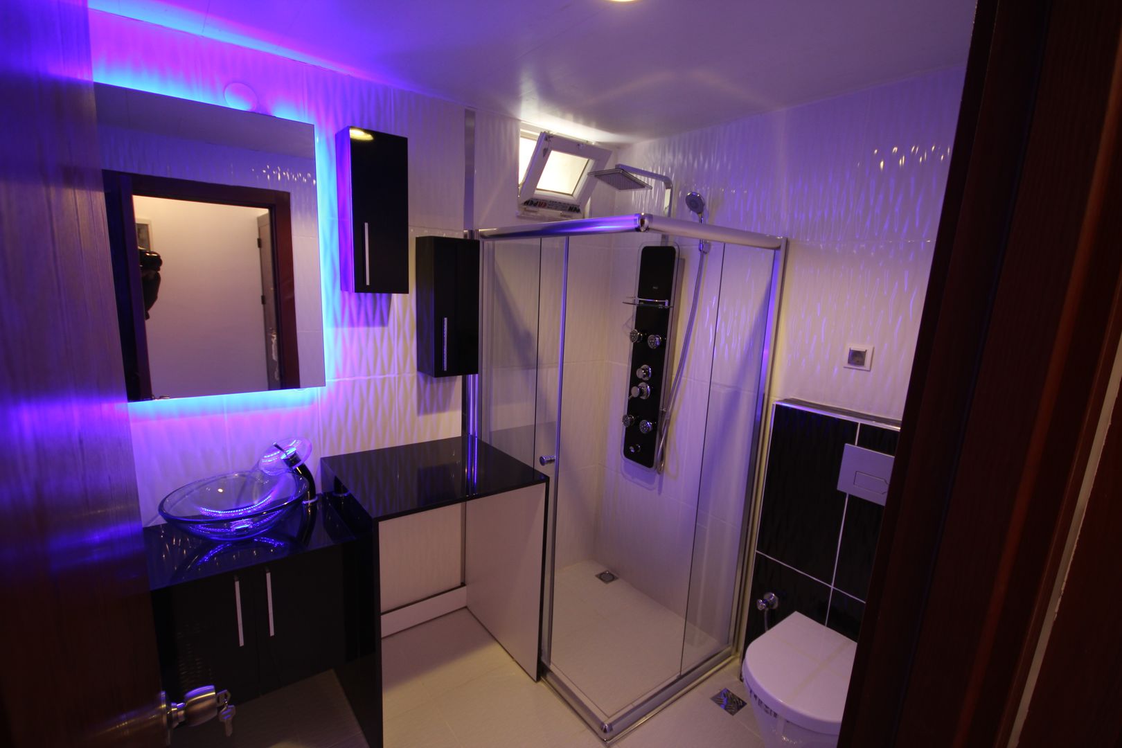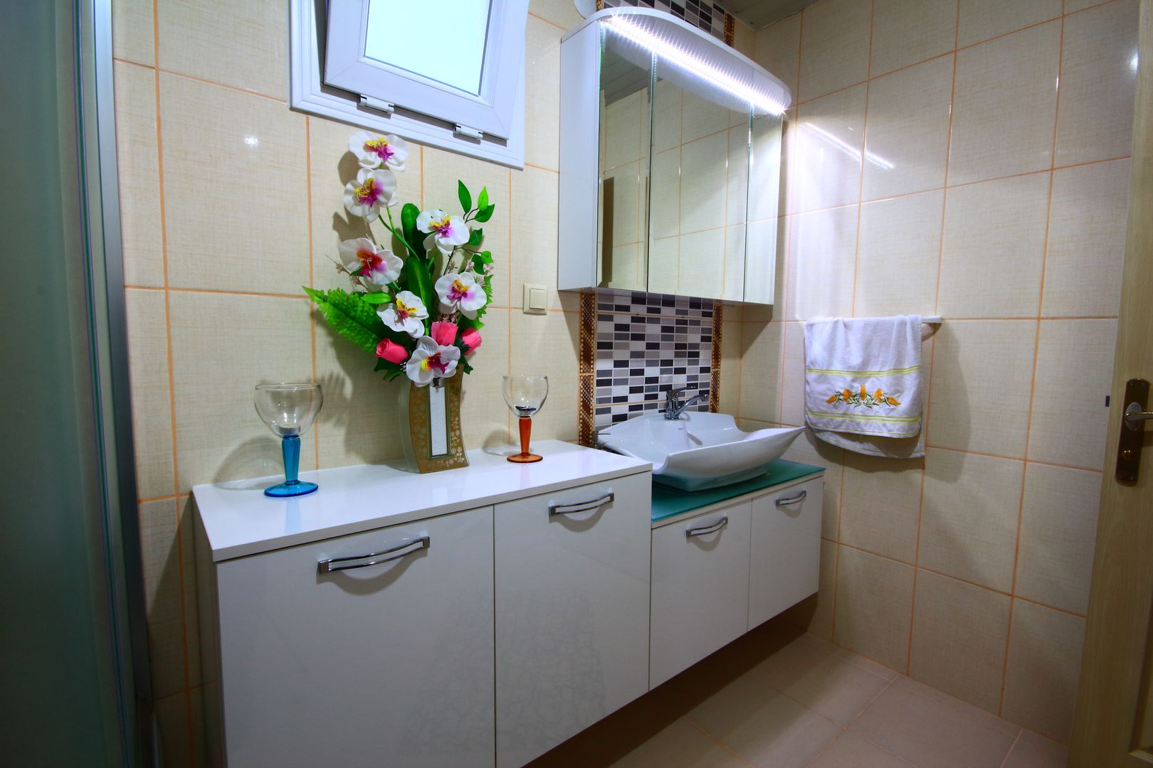 Banyoların ölçüleri ve geometrileri Akdeniz banyo modellerinde yapılan yerleşim planları ve seçilen banyo mobilyaları ile arka plana itilmekte, banyonun dekoratif ve dinlendirici görüntüsü ön plana çıkarılarak boyutlarının küçüklüğü dezavantajı ortadan kaldırılmaktadır.
