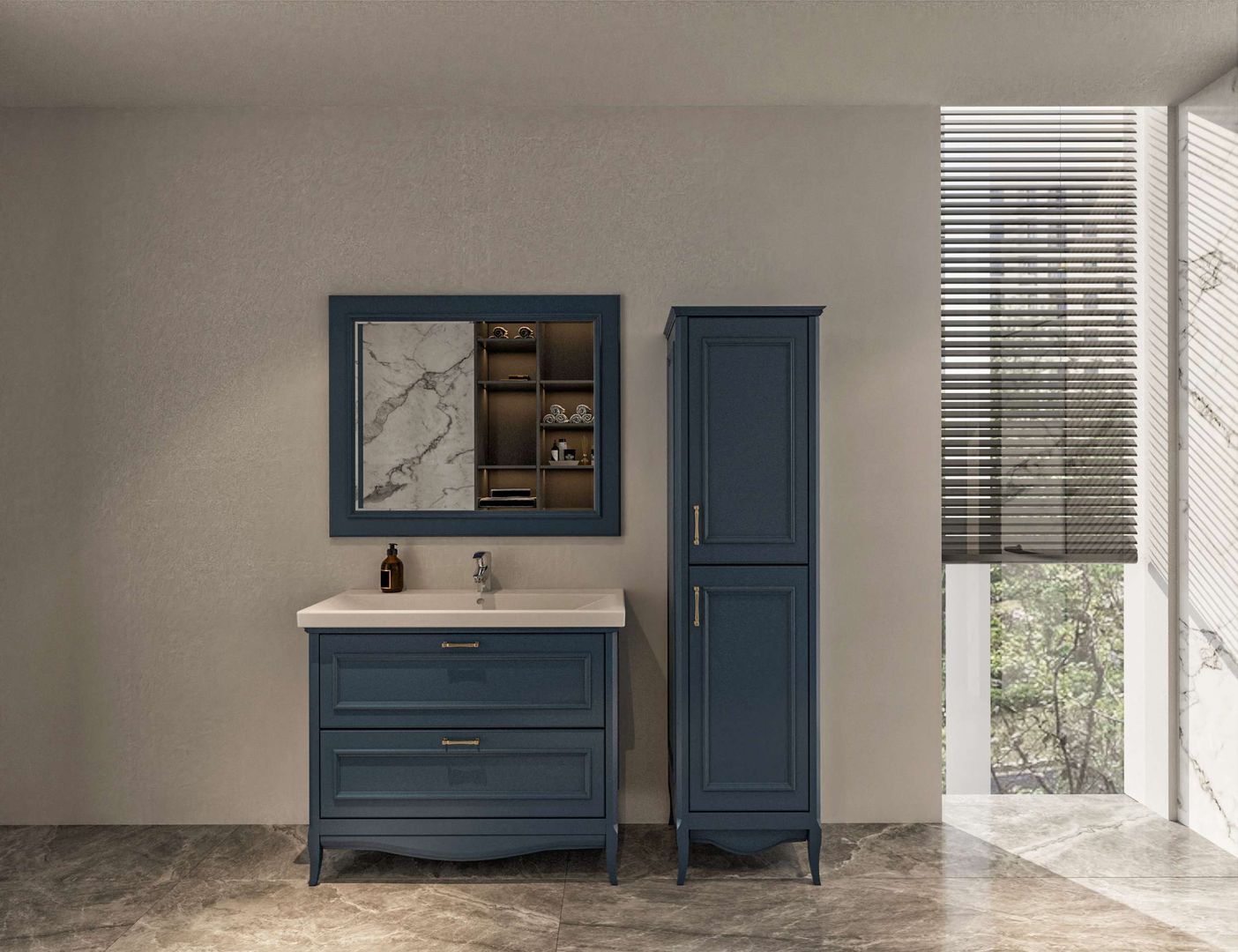 Bir banyonun tüm mobilyalarını seçerken öncelikle banyonun tasarımına ve ferahlık yaratan renklere bakılarak seçimler yapılır. Ayrıca banyo içinde yerleşimler de çok önemlidir. Seçilen mobilyalar Akdeniz banyo modellerinde sadeliği ve zarafeti ön plana çıkaracak renkli modeller arasından seçilerek tasarıma dahil edilir.