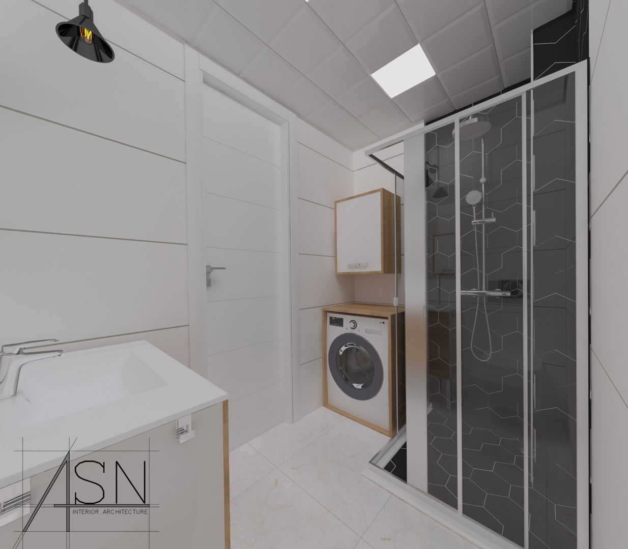 Bu tarz banyolarda beyaz rengi mutlaka öne çıkar. Bununla birlikte eğer duvarlarda desenli fayans kullandıysanız zeminde beyazı rahatlıkla tercih edebilirsiniz. Siyah beyaz seramik karolar da İskandinav banyoyu tamamlayıcı bir seçimdir.