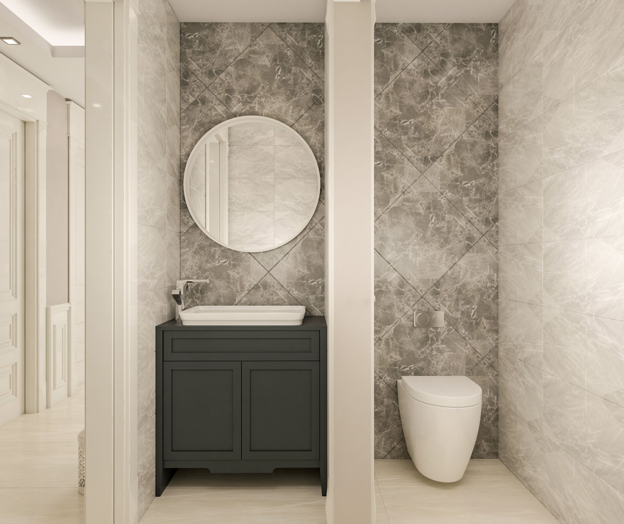 Minimalist tarzdan esintiler taşıyan İskandinav stilde yumuşak, nötr tonları rahatlıkla kullanabilirsiniz. Özellikle beyaz rengi baskındır. Böylece mevcut banyo alanı küçük dahi olsa beyaz renkle daha ferah ve aydınlık gözükecektir. Beyaz rengi zeminde, duvar kaplamalarında, lavabo ve küvet gibi büyük parçalarda rahatlıkla kullanabilirsiniz. Bu sayede banyo, görsel açıdan olduğundan daha büyükmüş gibi algılanır. Beyaz dışında gri ve pastel tonlar da kullanılabilir.