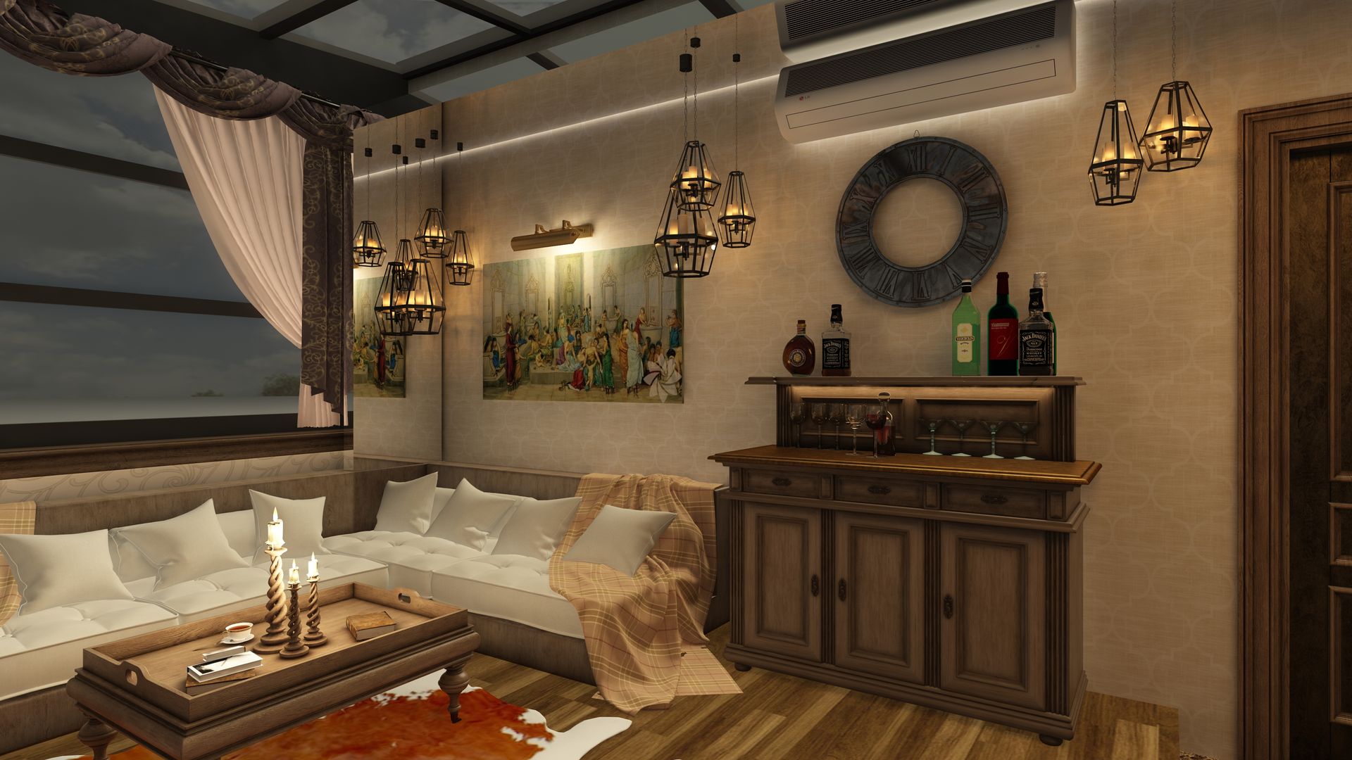 Göz önünde ahşap kirişler kullanmak rustik tarzda kış bahçeleri yaratmak için çok iyi bir yoldur. Daha huzurlu ve konforlu bir atmosfer yaratmak için şömine kullanmak da bir başka seçenektir. Desenli sandalyeler ve ahşap masalar da bu tarzda çok iyi sonuçlar verir. Eğer evinizin genelinde rustik tarzın hakimiyeti varsa, kış bahçenizi de buna uygun biçimde tasarlamak evinize değer katacaktır. Çok sayıda pencere kullanımı da bu tarzla uyum sağlar ve ilginç bir özellik olarak evinizi satmaya karar verdiğinizde evinizin prim yapmasını sağlayabilir.