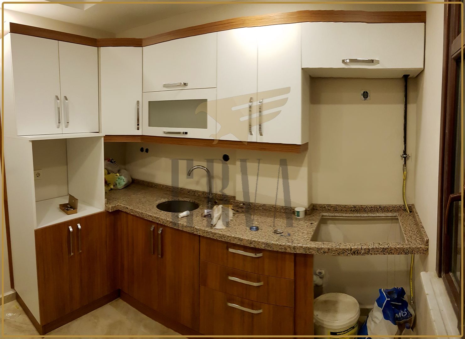 Mutfak duvarları beyazın alternatifi olarak sarı veya turkuaz renklidir. Fayans dışında kalan duvarlar yüzeyli sıvalı haliyle kusurları görülecek şekilde kaba olarak bırakılabilir. Bunun amacı duvarın dokusunu vurgulamaktır. Terrakotta veya el yapımı fayanslar genellikle zeminler için kullanılırken tavan genellikle ahşap kirişlerle karakterize edilir. Bununla birlikte, ahşap veya seramik zeminler de görülür.