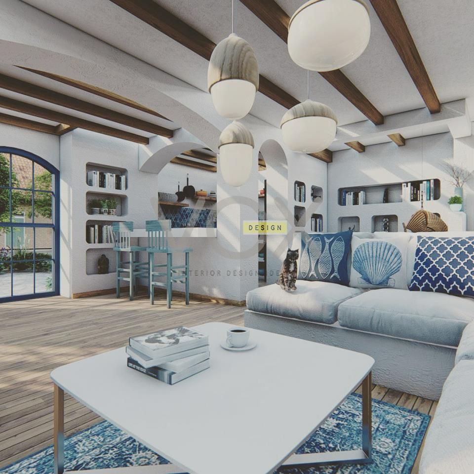 Akdeniz stil ile bir oturma odası belli bir amaca göre döşenir. Aydınlık ve ferah bir atmosfer oluşturulmalı, bunun için doğal ve yapay ışıklandırma unsurları göz önünde bulundurulmalıdır. Öncelikle amaç deniz esintisi, ferahlık ve deniz bölgeleri atmosferini yansıtmaktır. Deniz, kum, dalgalar, bitki örtüsü, martılar, tuz kokusu ve dahası hakkında düşünerek temalar belirleyebilirsiniz. Ada ve kıyıların ferah etkisini dekorasyona taşımak ve farklı temalarla bir araya getirmek mümkün.