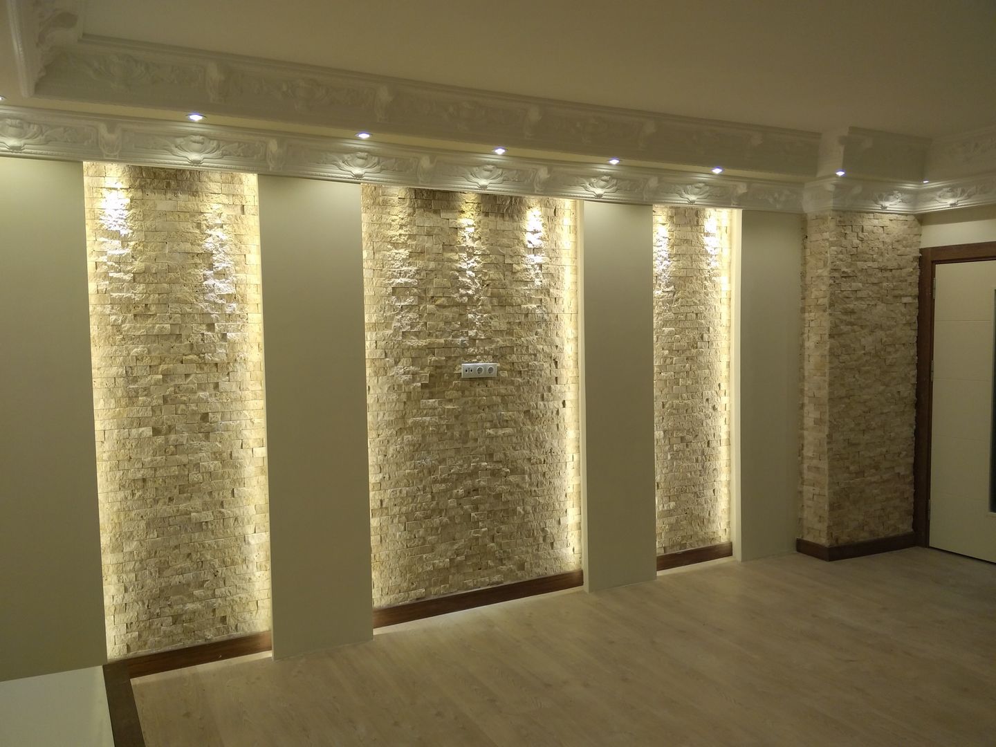 İster kerpiç ister betonarme sistemlerle sıvalanmış bir oturma odası olsun; Akdeniz stil ile döşenen bir evde duvarlarda beyaz ya da açık renk tonları hakimdir. Beyaz rengin ağırlıklı tercih edilmesinin yanı sıra, istisna olarak doğal taş duvarlar, bej ya da krem rengi zemin tonları takip eder.