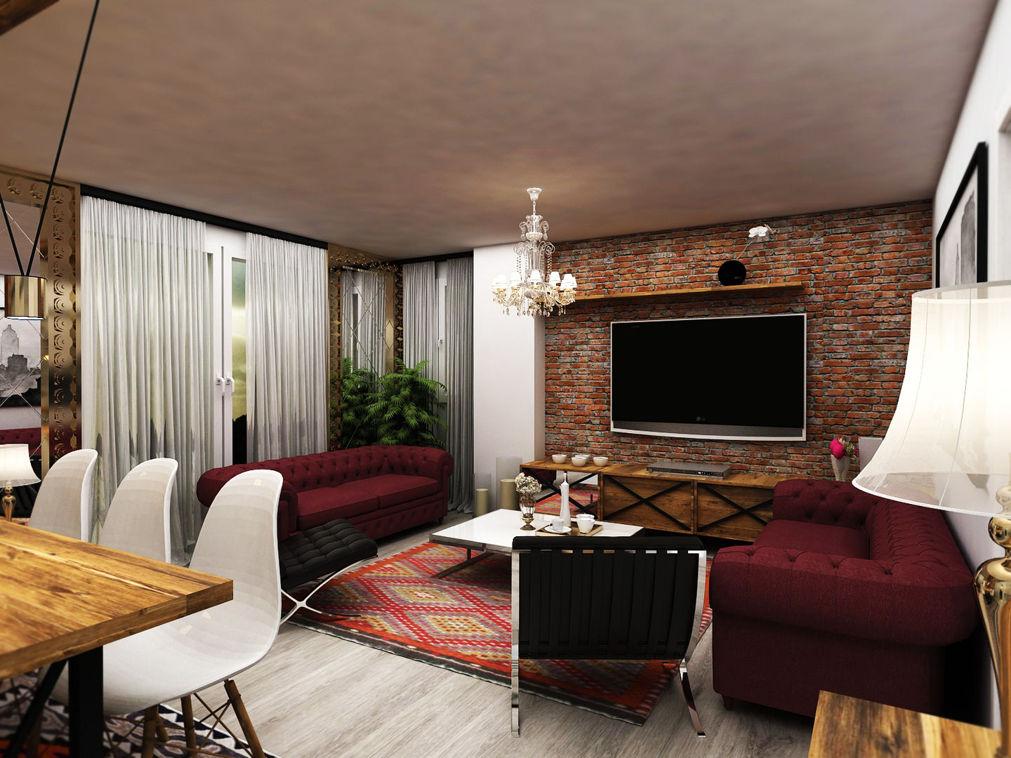 Eklektik Oturma Odası İçin Tasarımlar & Resimler