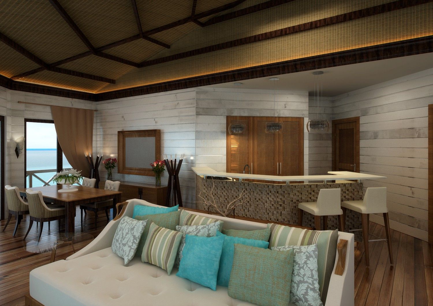 Oturma odasının mobilyaları arasında en başta koltuk takımı gelir. Salonunuzda Hawai esintili mobilyalar istiyorsanız hayvan veya bitki desenli, canlı baskıları olan bir koltuk tasarımı sizin için idealdir. Çarpıcı renklerden ve dikkat çeken desenlerden hoşlanmıyorsanız eğer malzemesiyle öne çıkan mobilyalara bakın. Bambu ve hasır süslemeli eşyalar, yeşil bitkilerle bir araya gelince oturma odasında Tropikal atmosferi yaratacaktır. Görünüm kadar rahatlık da önemlidir.