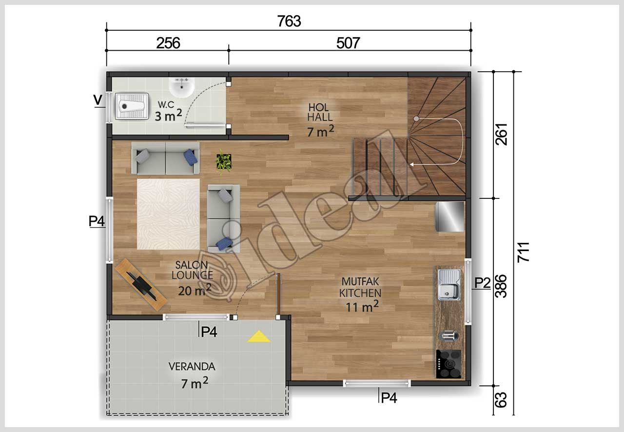Öncelikle konstrüksiyon oluşturulurken kullanım ihtiyacına göre alan kullanımı, ölçülendirme ve ebatlarla ilgili bilgiler belirlenir. Montaj aşamasına hazırlanacak olan olan taşıyıcı sistemler vidalı ve kaynak kullanılarak çelik profil ve putrellerle yapılabilir. Ayrıca dış duvar kaplamaları için betopan, yalı baskı, siding, bisküvi tuğla, sıvalı mantolama uygulanabilir. Alçıpan, betonpan ve alçı sıva-kartonpiyer uygulamaları da iç duvarlar için tercih edilebilir. Çatı örtüsü olarak shingle, ondüline, saç malzeme veye kiremit kullanılabilir.